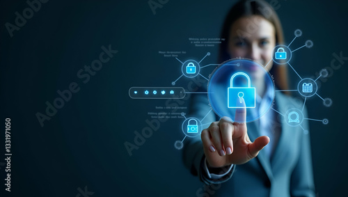 Woman Using Holographic Interface for Secure Login: Data Protection & Cybersecurity Concepts