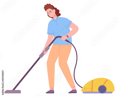 Woman vacuum cleaning. Household cleanup. Housekeeping person