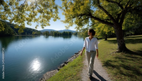 woman, walking, lake, sunny, day, enjoying, relaxing, nature, outdoors, tree, water, landscape, summer, peace, calmness, serene, calm, happy, healthy, lifestyle, travel, scenery, beauty, sunlight, leaf, green, blue, path, trail, park, leisure, recreation, freedom, fresh, air, alone, quiet, peaceful, morning, afternoon, weekend, holiday, vacation, destination