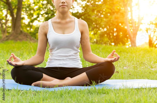 woman was meditation yoga in park at eveing