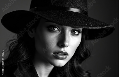 hat, woman, portrait, monochrome, black, and, white, fashion, style, elegance, beauty, glamour, accessory, headwear, female, model, sophisticated, classic, expressive, confident, artistic, dramatic, lighting, close, up, face, expression, timeless, chic, stylish, shot
