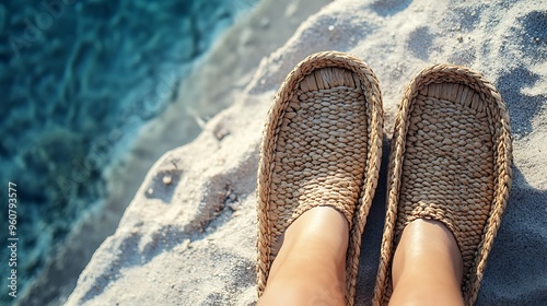 shoe, sandal, beach, summer, vacation, travel, foot, woman, girl, sand, ocean, water, woven, natural, lifestyle, relax, fashion, style, comfortable, casual attire, trendy, environmentally friendly