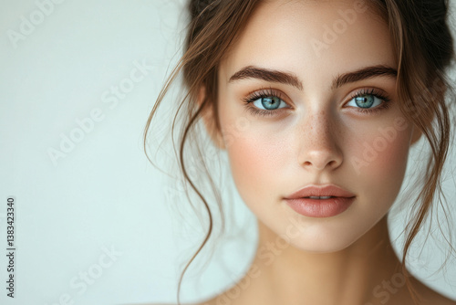 woman, blue eye, brown hair, portrait, beauty, elegance, gaze, striking, mesmerizing, closeup, young, attractive, model, stunning, feature, expression, femininity, confidence, style, make-up, fashion, alluring, charming, majestic, posing, personality, allure, sophistication, enchanting, charisma, intense, captivating, sensual, radiance, eye, hair, colours, face, feminine