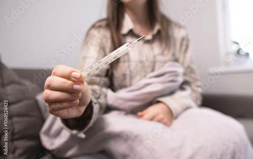 disease, flu, person, blanket, pill, spray, thermometer, fever, woman, sofa, virus, adult, temperature, female, ill, living room, medicine, sick, health, symptom, home, health care, indoor, one person, photograph, color image, infection, sitting, domestic life, cold, nose, resting, sad, sleepy, tissue, sneezing, unwell, allergy, brown hair, care, cough, pain, uncomfortable, tissue
