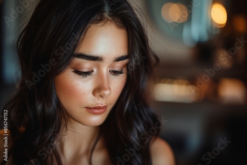 woman, freckle, gazing, thoughtful, cosy, indoor, setting, beauty, natural, serene, portrait, warm, soft light, relaxed, casual attire, feminine, soft focus, bright, dreamy, intimate, elegant, simple, youthful, natural beauty, stylish, calm, peaceful, modern, young, comfortable, gentle, warm tones, introspective, natural light, home, inviting, personal, radiant, minimalistic, everyday