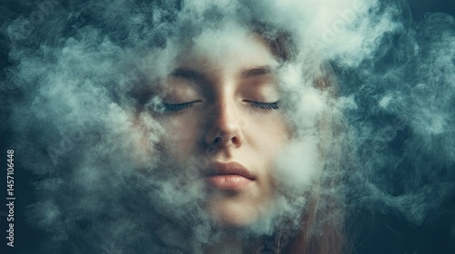 Woman with Head in Cloud – Concept of Brain Fog and Memory Loss --