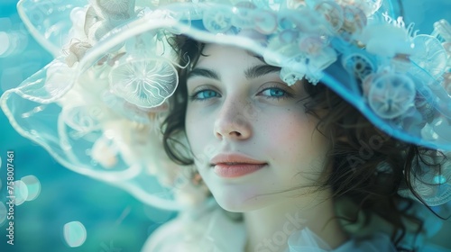 woman, jellyfish, hat, female, person, young, beauty, portrait, fashion, attractive, model, lady, background, dress, happy, face, hair, cute, culture, pretty, posing, summer, white, adult, red, glamour, caucasian, style, lifestyle, studio, cheerful, smile, sensuality, black, elegance, stylish, coiffure, vintage, make-up, closeup, art, happiness, charming, bright, curly, american, joy, hipster, casual attire