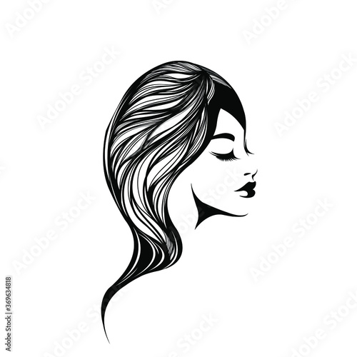 woman, portrait, beauty, hair, face, young, beautiful, model, fashion, eye, glamour, lady, person, make-up, head, lip, studio, long hair, hair salon, beauty parlour, hairdresser, eyelash, eyebrow, skincare, cosmetic, spa, cute, female, beautician, isolated, icon, logotype, vector, illustration, wavy, coiffure, elegant, femininity, luxury, mouth, look, style, lipstick, smile, profile, haircut, design