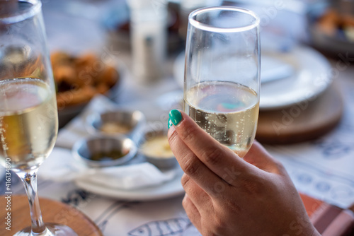 champaign, drink, festive, alcohol, woman, hold, manicure, horizontal, food, people, female, celebration, indoor, color image, event, cropped, activity, refreshment, avocation, glassware, hand