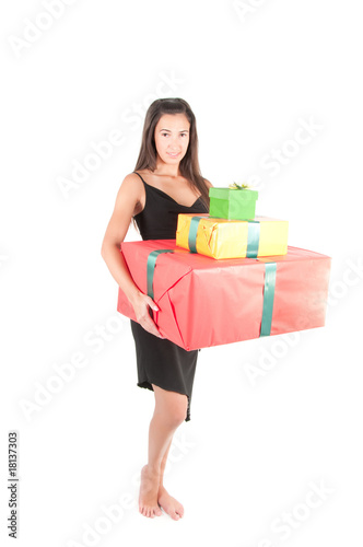 portrait, studio, cute, isolated, young, beautiful, posing, adult, human, dress, lady, caucasian, female, hair, fashion, beauty, girl, woman, 1, model, white, glamour, photo, little, only, sensuality, art, black, skin, face, image, photo, photograph, clothes, positive, person, lovely, pretty, natural, standing, pose, elegance, european, clothing, brunette, box, present, christmas, christmas