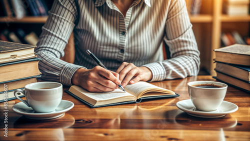 book, notepad, recording, plan, hot drink, cup, drink, tea, woman, cafes, hand, mug, beverage, business, table, breakfast, holding, people, hand, hot, person, computer, drinking, office, laptop, closeup, eatery, morning, break