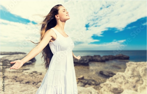 woman, beach, sunset, joyful, sunlight, soul, life, girl, free, ocean, natural, worshipful, travel, arm, nirvana, peace, happiness, adult, worship, sunny, god, summer, spiritual, freedom, people, sun, sunshine, relaxing, faith