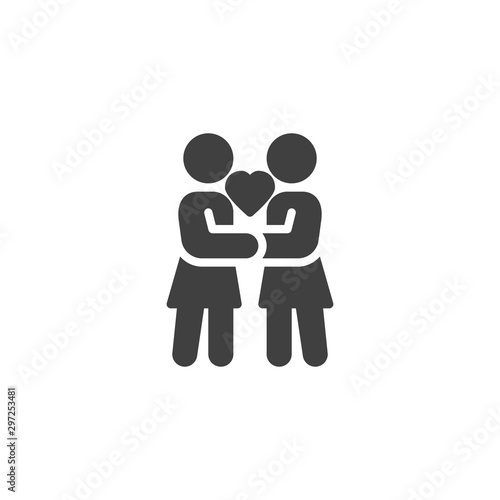 Women couple with heart vector icon. filled flat sign for mobile concept and web design. Lesbian love and friendship glyph icon. Symbol, logo illustration. Vector graphics