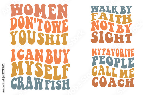 Women don't owe you shit, walk by faith not by sight, I can busy my self crawfish, my favorite people call me coach retro wavy SVG T-shirt bundle