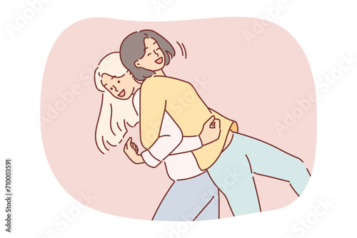 friends, entertainment, fun, woman, back, spine, couple, positive, friendship, optimistic, mood, happy, carefree, energetic, glad, riding, enjoyment, smile, holiday, joy, together, hugs, leisure, carry, activity, excited, shoulder, massage, laugh, female, girl, lady, sister, cheerful, bliss, laughter, lift, game, recreation, teenage, piggyback, support, trust, pastime, human, vector, illustration, person, isolated, concept