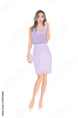 Women on high heels dressed in stylish trendy clothes - female fashion illustration