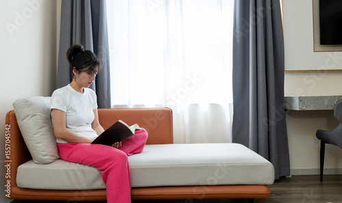 woman, book, sofa, read, home, couch, female, lifestyle, reading, happy, relax, leisure, sitting, indoor, cosy, people, beautiful, literature, hobby, person, education, adult, holding, room, novel, rest, apartment, living room, cognition, house, study, interior, modern, calm, comfortable, furniture, day, window, curtain, casual attire, full-length, barefoot beach, half face, chinese, copy space