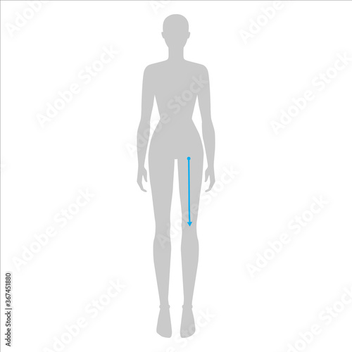 Women to do crotch to knee measurement fashion Illustration for size chart. 7.5 head size girl for site or online shop. Human body infographic template for clothes.