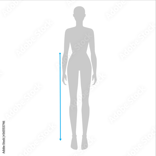 Women to do waist to floor measurement fashion Illustration for size chart. 7.5 head size girl for site or online shop. Human body infographic template for clothes.