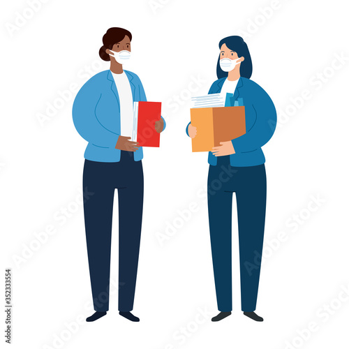 women unemployment concept, company worker holding stuff in box, from coronavirus crisis covid 19 vector illustration design