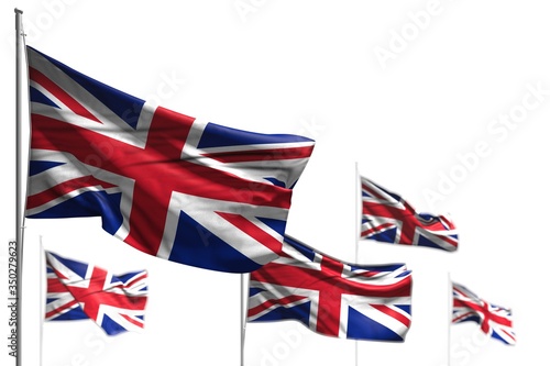 wonderful any feast flag 3d illustration. - five flags of United Kingdom (UK) are waving isolated on white - photo with selective focus
