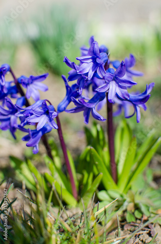 Wonderful hyacinth flowers bloom outdoors in spring on a sunny day