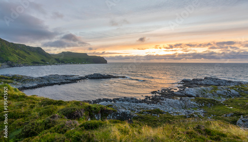 relax, natural, holiday, remote, craggy, vacation, hill, scenic, travel destination, sunset, seascape, outdoors, idylli, peaceful, calmness, tranquil, ocean, wave, water, midnight sun, midnight, summer, late, evening, norwegian, norge, travel, destination, bay, shore, coastline, scenery, cloud, background, mountain, scenic, tour tourism, beach, beautiful, sea, view, coast, green, blue, sky, nature