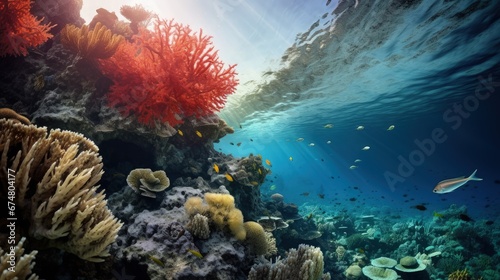 Wonderful underwater marine scenery wide angle photos, these coral reef are in healthy condition. The diversity is amazing and the marine life is abundant. The tropical waters of Indonesia.