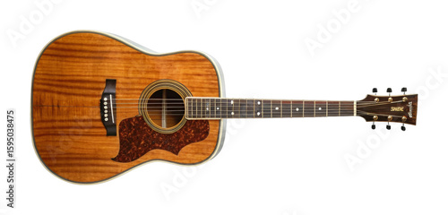 Wooden acoustic guitar with steel strings and artistic pickguard