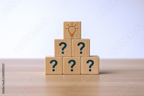 Wooden Blocks Stacked with Question Marks and Lightbulb Symbolizing Problem Solving and Innovative Ideas