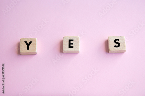 Wooden cubes with the inscription YES on a pink background