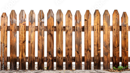 Wooden fence with vertical planks. Rural living, craftsmanship, or natural aesthetics or as foreground overlay on designs.