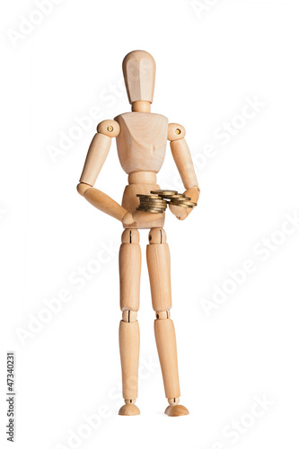 bank, banking, body, buck, business, cash, change, clipping, coin, cost, credit, currency, doll, dollar, dummy, estate, exchange, figure, figurine, finance, financial, gesture, human, income, investment, isolated, bequest, man, mannequin, model, money, person, pose, puppet, rich, single, stock, toy, treasure, valuable, wealth, white, wood, wooden