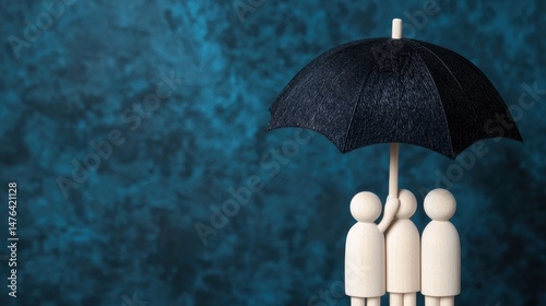 umbrella, protection, support, wooden, figure, group, safety, shelter, teamwork, oneness, concept, balance, metaphor, creativity, blue, background, abstract, illustration, minimalist, design, people, togetherness, care, friendship, security, well-being, harmony, partnership, lifestyle, hope, comfort, reassurance, connection, peace, love, trust, diversity, collaboration, resilience, nature