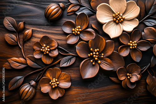 wood, flower, carving, art, decor, panel, floral, wall, brown, texture, design, craft, background, nature, home, interior, decoration, elegant, luxury, rustic, vintage, style, aesthetic, beautiful, blossom, hand-made, artwork, detail, intricate, pattern, relief, sculpture, ornament, wooden, furniture, spring, autumn, plant, leaf, image, photo, graphic, template, element, illustration