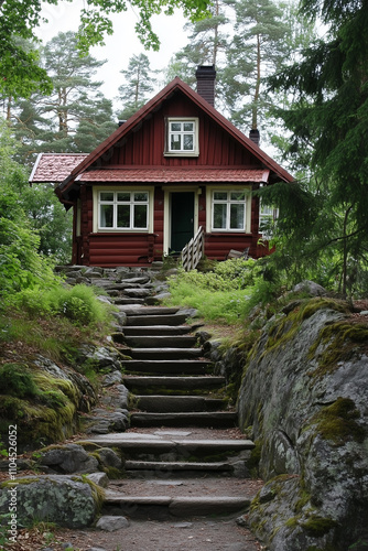 Wooden house in Finland, nestled in forest, exuding warmth and rustic charm.