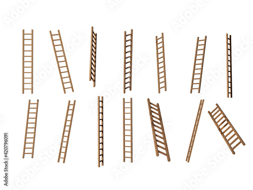 Wooden ladder isolated on a white background.3d illustration