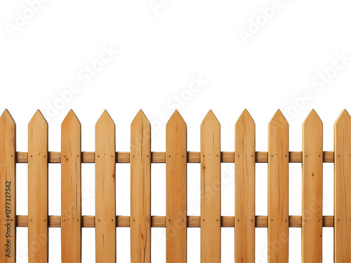 Wooden picket fence with pointed tops and evenly spaced vertical slats, showcasing natural wood grain and rustic charm.