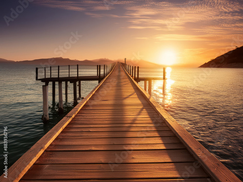 pier, sunset, water, lake, sea, sky, bridge, landscape, breakwater, nature, wooden, sunrise, ocean, wood, summer, travel, sun, horizon, coast, morning, cloud, calm, beautiful