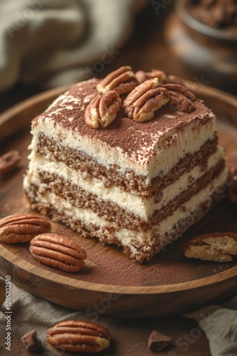 slice, cake, wooden, plate, dessert, snack, treat, baking, pastry, decoration, food, table, setting, flatware, ceramic, white, kitchen, home, deliciously, tasty, delicious, freshly