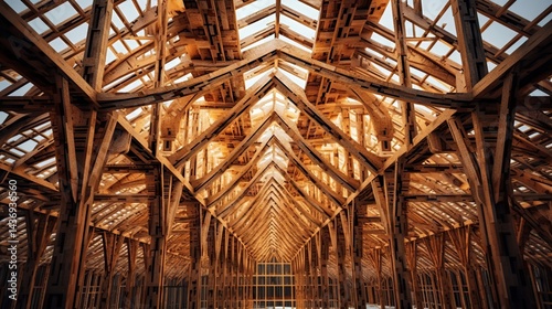 wooden, roof, skeleton, building, construction, truss, framework, architecture, structure, beam, carpenter's shop, woodwork, frame, design, timber, engineering, project, skeletal, rafter, joinery, craftsmanship, craftsmanship, carpenter, joist, site, technique, housing, development, wood, home, industry, background, exterior, timbering, material, wall, detail, rooftop, sky, residential, plank, new, modern, pattern, renovation, men at work, interior, white