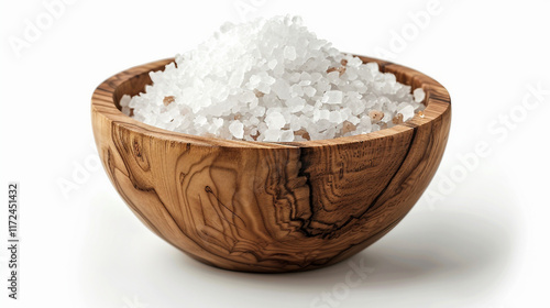 Wooden Salt Cellar Filled with Flaky Sea Salt on white background.PNG