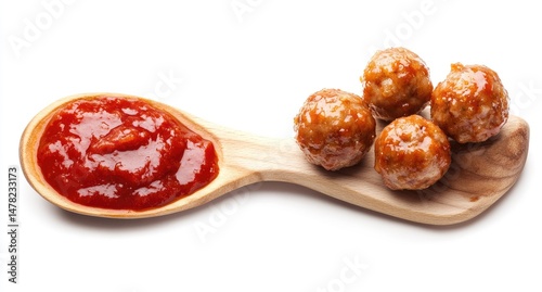 meatball, sauce, tomatoes, red, wooden, spoon, food, dish, cookery, italian, delicious, tasty, dinner, lunch, homemade, comfort, easy, simple, meat, pork meat, beef, ground, honed, serving, top, view, isolated, white, background, appetising, flavorful, protein, nourishment, healthy, meal, oven, crispy, brown, round, small, portion, close, up