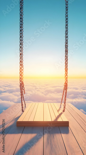 illustration, cloud, swing, wooden, chain, sunset, sky, peaceful, serene, calm, calmness, relaxation, dreamy, aethereal, fantasy, hope, freedom, peace, quiet, solitude, escape, journey, adventure, meditation, mindfulness, spiritual, uplifting, inspiring, beautiful, majestic, wonder, magic, mystical, heaven, paradise, imaginary, surreal, artistic, creative, design, artwork, digital artwork, graphic, image, background, wallpaper, texture