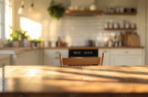 table, kitchen, wood, surface, chair, room, furniture, interior, design, home, sunlight, sun, light, shadow, natural, warm, cosy, bright, white, yellow, brown, rustic, modern, clean, minimalist, decor, decorating, style, dining, breakfast, dinner, space, house, wooden, tabletop, countertop, product, display, template, food, photo, background, kitchen utensile