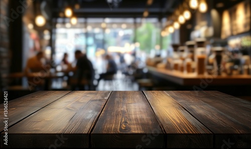 Wooden Table in Blurred Cafe Setting Great for Product Mockups