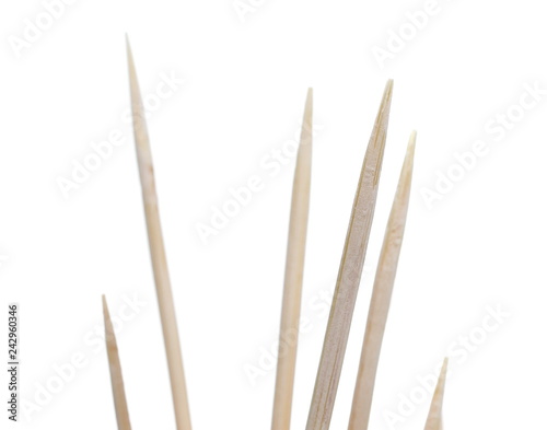 Wooden toothpicks, macro isolated on white background, clipping path
