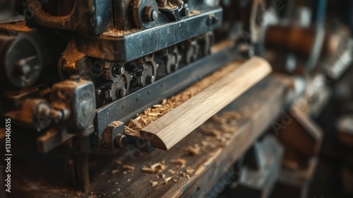 Woodworking Machine in Action Showing Shavings, Tools, and Craftsmanship in Workshop Environment