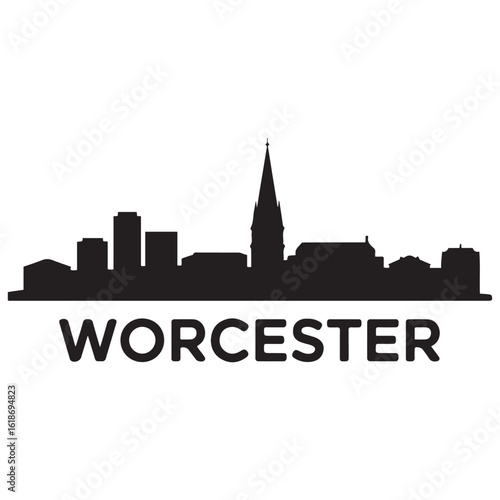 Worcester skyline silhouette. Black Worcester city. Vector black silhouette. with white background