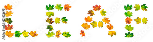 Word LEAF composed of autumn maple leafs